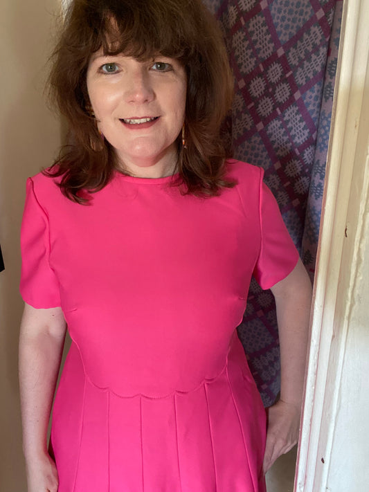 Vintage pink scallop detail skater dress polyester short sleeves size 14 16