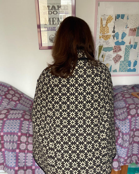Vintage black white monochrome Welsh Wool Tapestry short cape zip front waistcoat size 12 14 16
