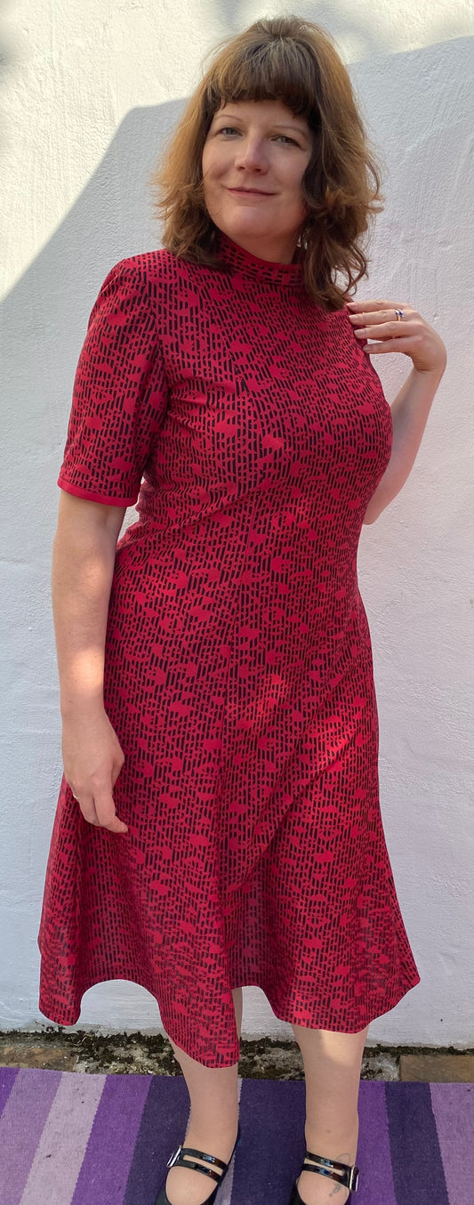 Vintage 80s red polyester frill dress with long sleeves size 14 16