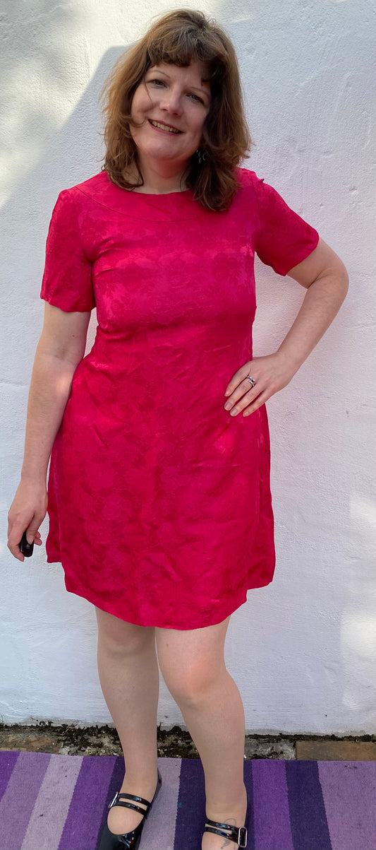 Vintage handmade pink silky shift dress short sleeves 60s 70s size 12 14