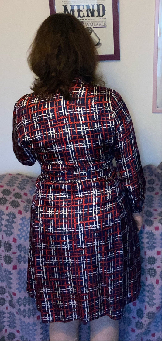 Vintage Blue red handmade pussybow 80s dress size 16 18