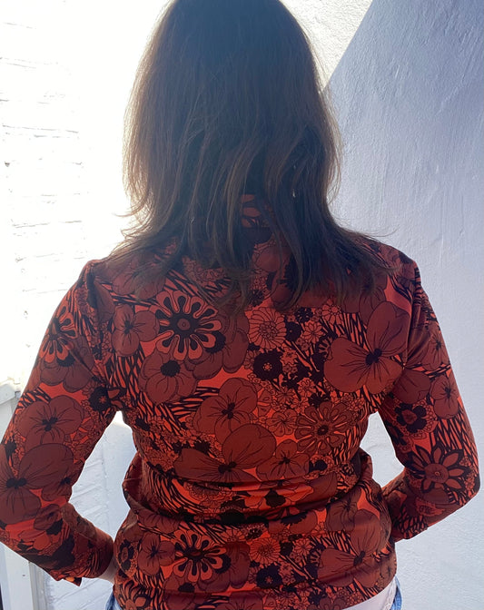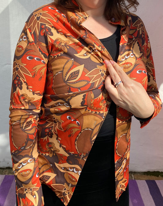 Vintage 70s orange brown St Michael polyester shirt collarless psychedelic print size 10