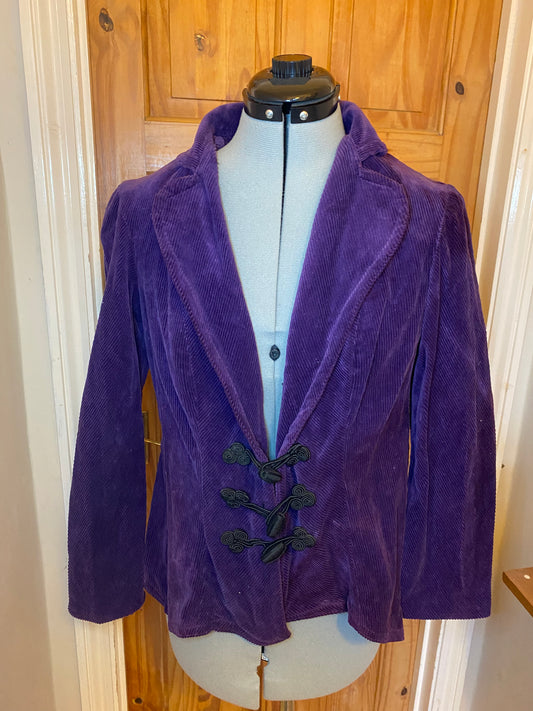 Vintage Laura Ashley made in Wales purple corduroy jacket long sleeves 70s size 10 buttons flared waist