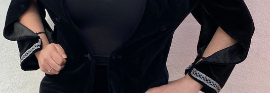 Vintage Black velvet evening jacked split sleeves silver detail cropped size 12 14