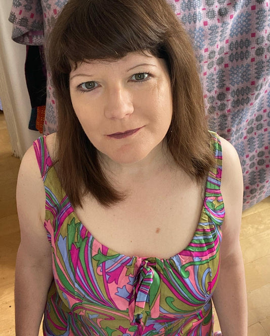 Vintage Pink Green Swirly psychadelic print strappy dress & jacket handmade 60s suit size 14