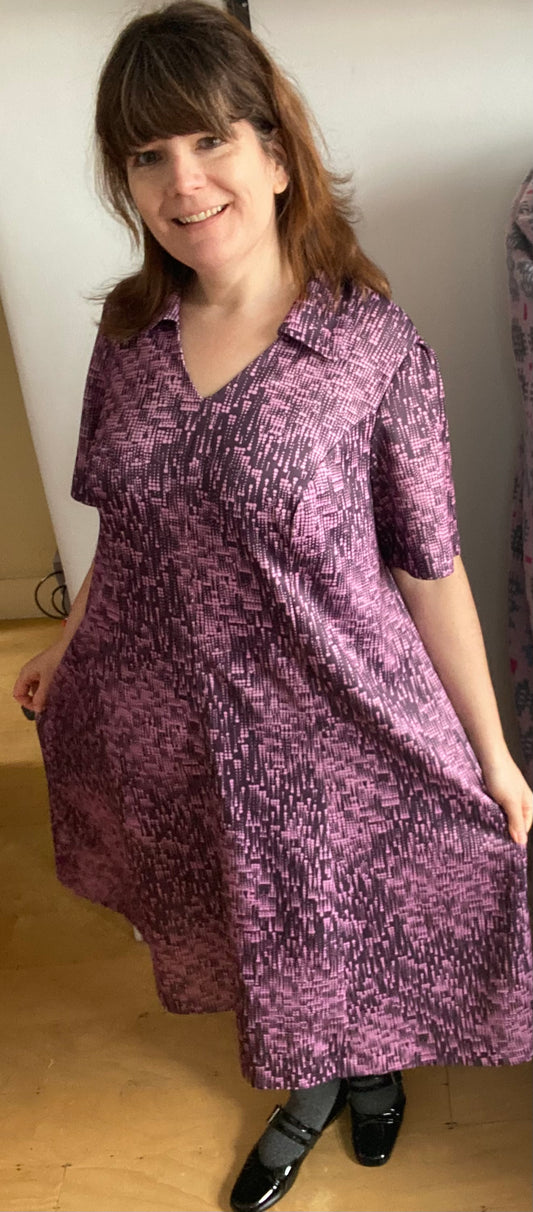 Vintage 70s 80s pink purple handmade skater dress stretchy collar polyester size 24