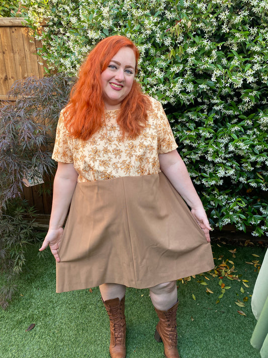 Vintage Brown orange 60s dress jacket suit two piece size 20 size 22