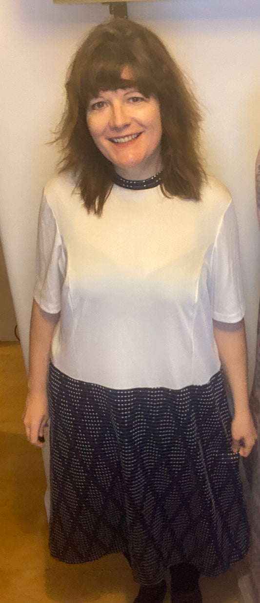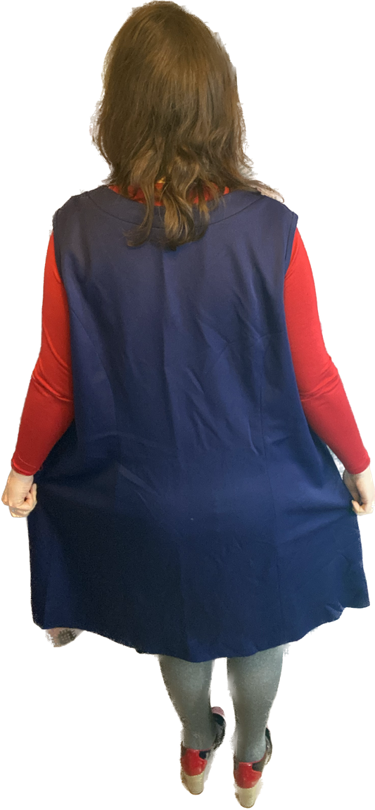 Vintage 70s 80s navy blue white top print skirt short sleeve dress polyester size 20 22