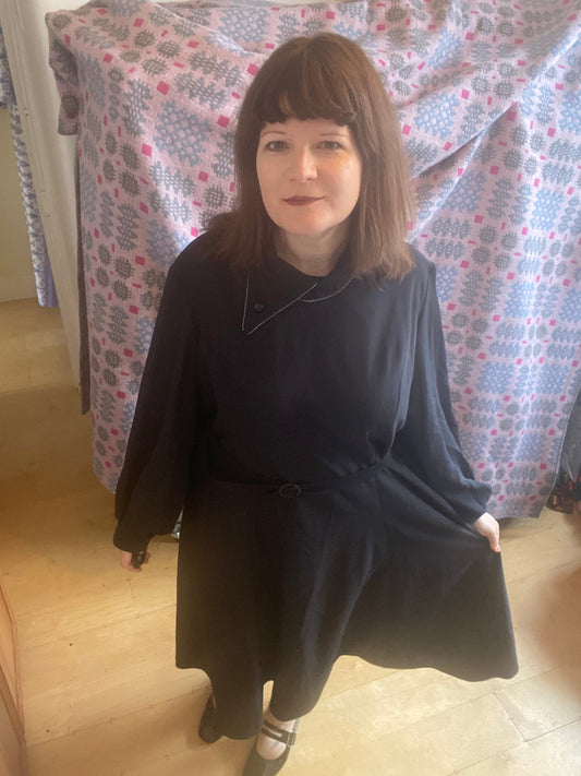 Vintage Norman Linton 70s 80s Black evening midi dress Size 16 & 26