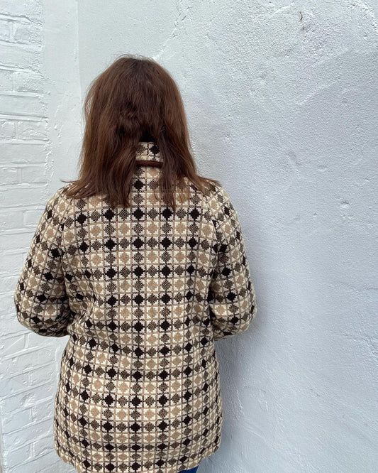 Vintage 60s Welsh wool Tapestry pea coat cream black brown grey size 14