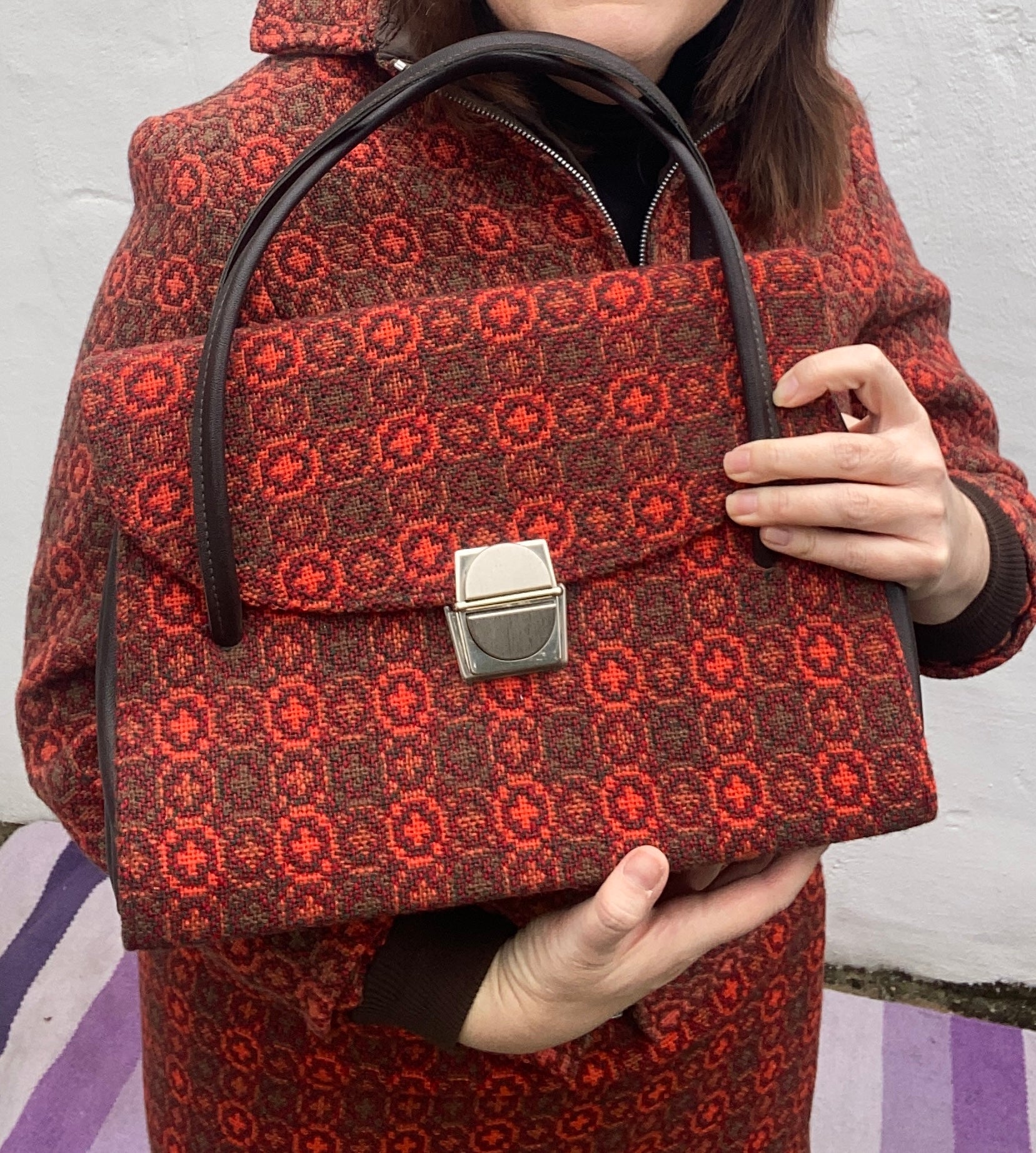Vintage orange brown Welsh Wool Tapestry large hand bag handbag
